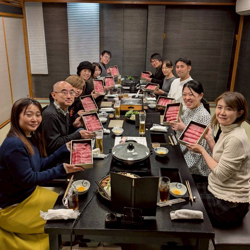 ここで交流会は一旦終了となり、希望者で終了後のオプションとしてお買い物に行きました。江戸時代の酒蔵跡を利用した「まちや倶楽部」で帆布のお店やナッツ専門店などをまわり、その後JA直売所「きてかーな」で地元の食材や加工品を皆さんたくさん買われていました。オプションの最後に近江牛のお店で懇親会をさせていただき解散となりました。